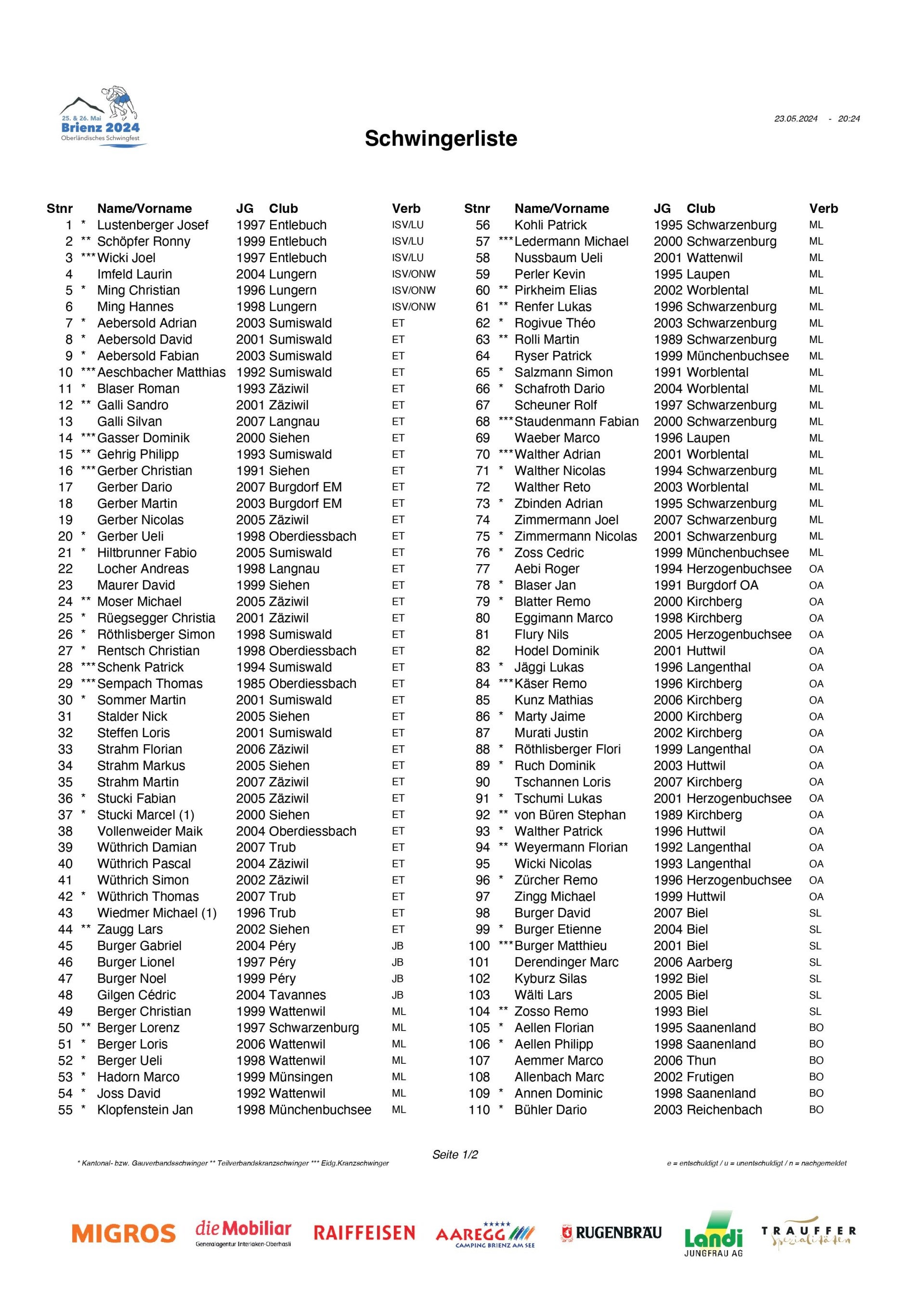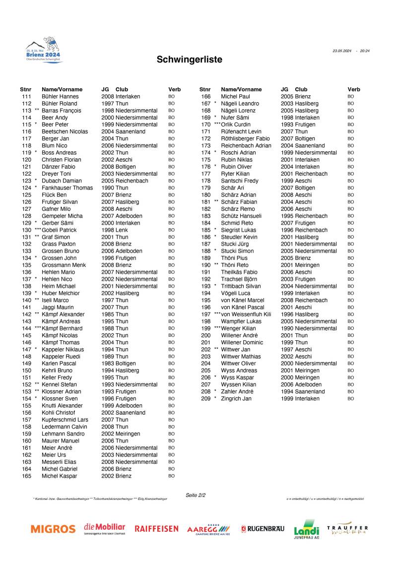Finden Sie hier die Schwingerliste vom Oberländischen Schwingfest in Brienz: